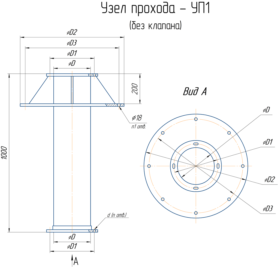 - Узел прохода УП 1 - без клапана (без кольца/с кольцом)
